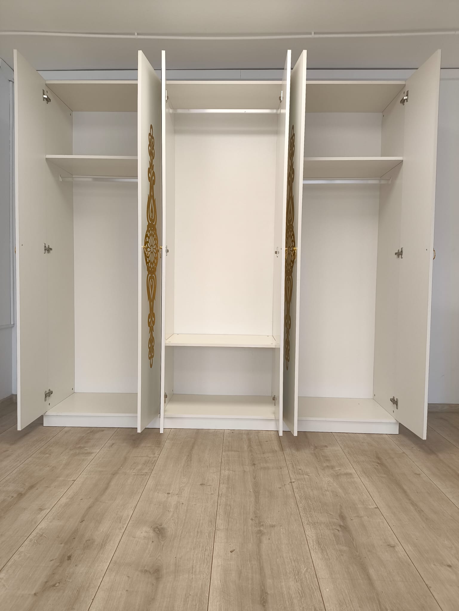 Design contemporan cu accente aurii elegant care oferă un aspect luxos și modern.