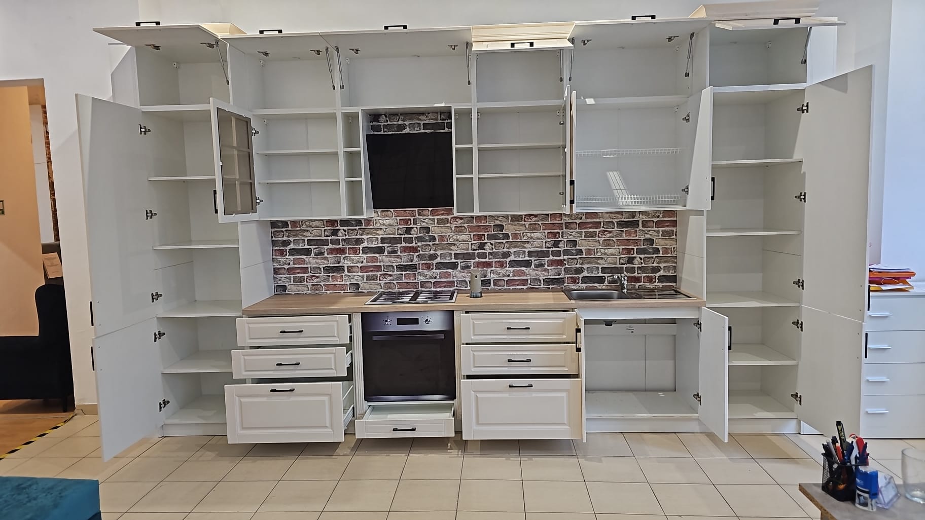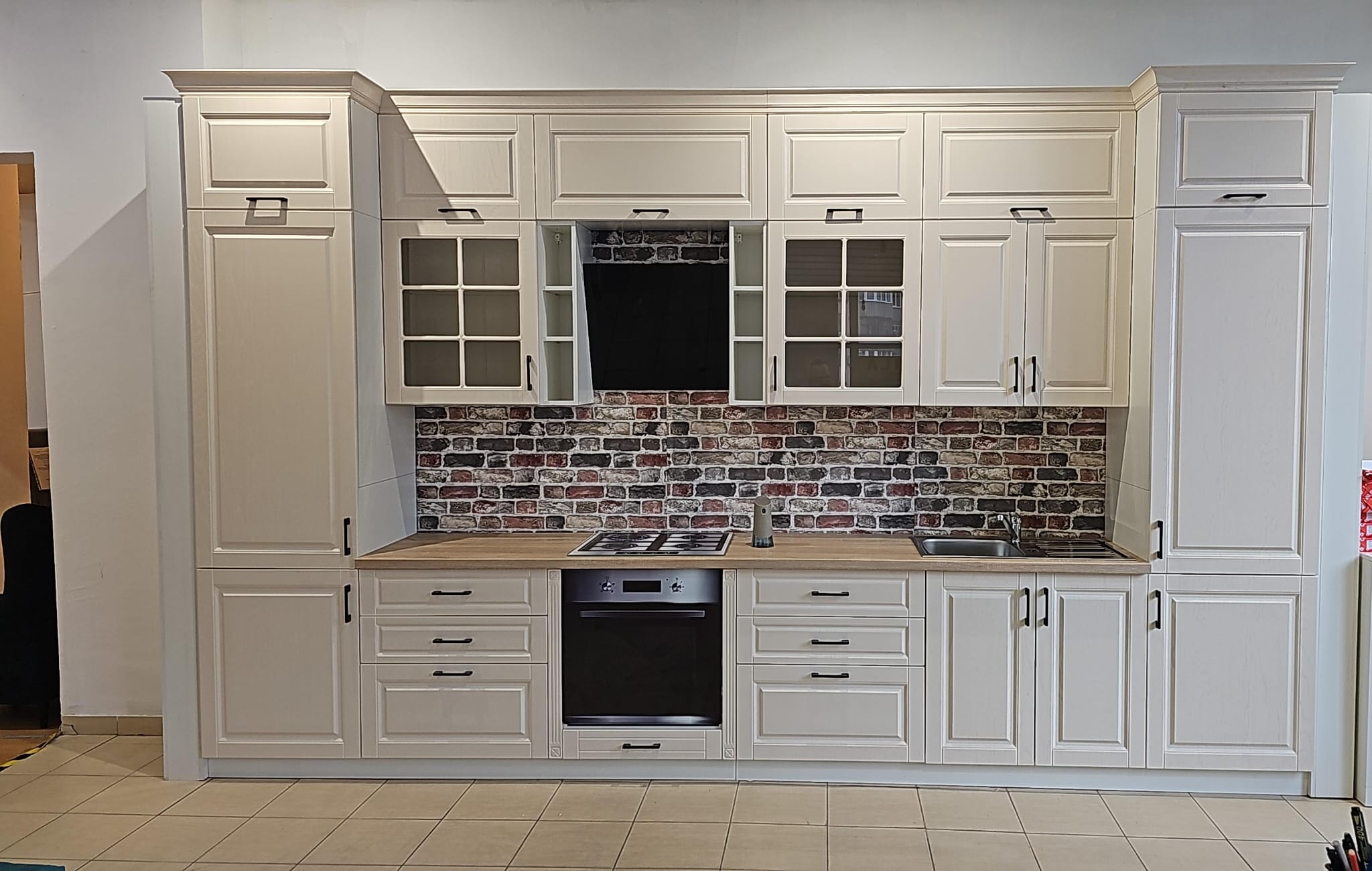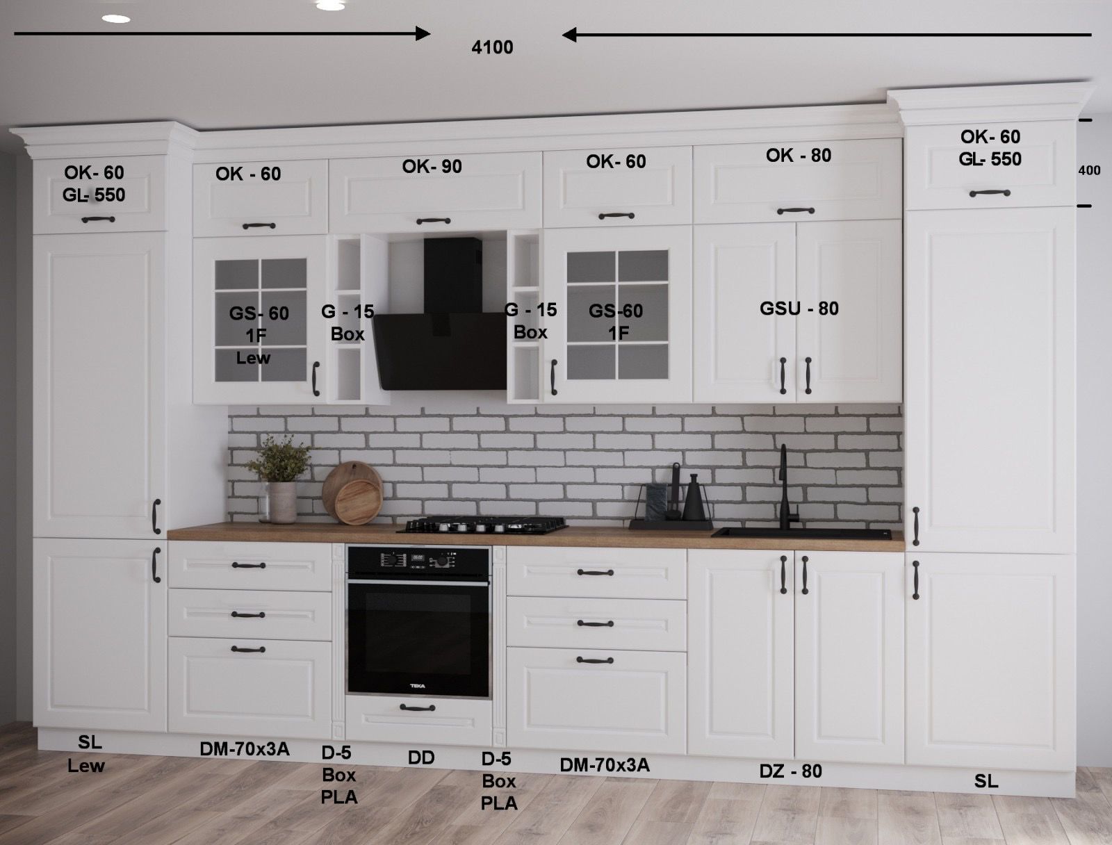 Pentru ca stim ca bucataria este una dintre cele mai importante camere din casa si uneori spatiul reprezinta o problema, iti punem la dispozitie bucataria AYDA 2 cu lungimea de 4,10 m, iar inaltimea 250 CM + cornisa 15CM . Bucataria optimizeaza spatiile de depozitare astfel incat toate ustensilele tale pentru gatit sa incapa cu brio. Designul modern si culoarea crem aduc un plus de stil si luminozitate casei tale.