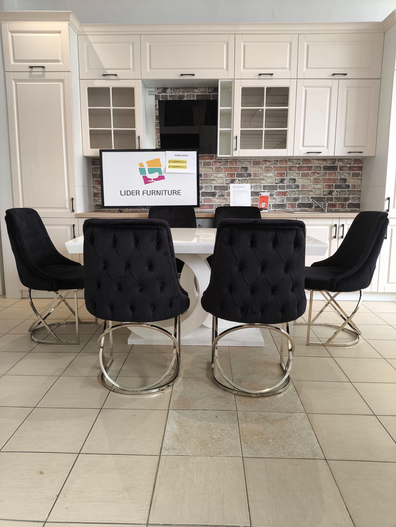 Setul de dining Monza redefinește eleganța modernă printr-un design minimalist și finisaje premium. Masa extensibilă, cu suprafață alb lucios, oferă un aspect curat și sofisticat, fiind ideală pentru interioare contemporane.