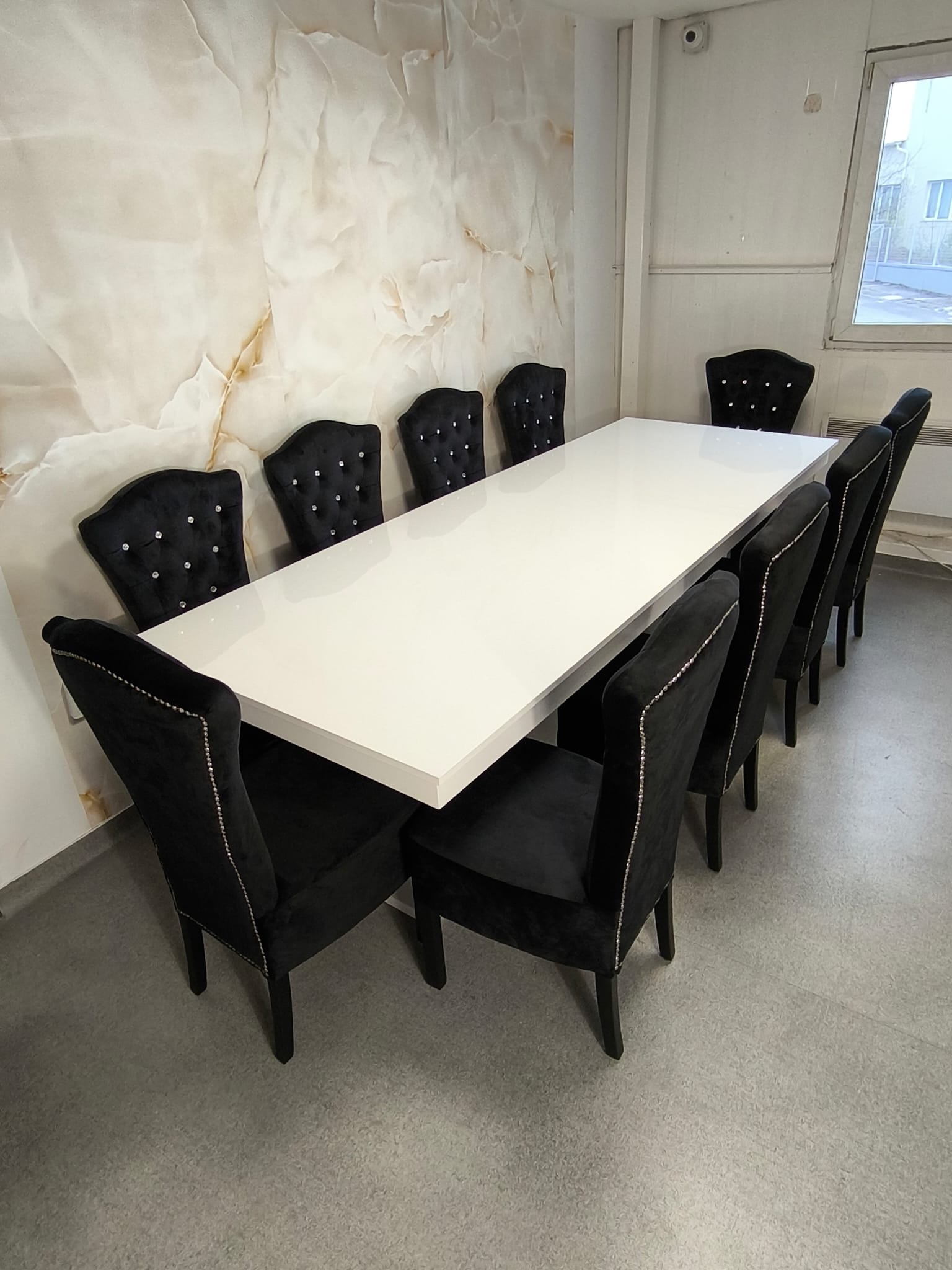 Masa este realizata din MDF lucios