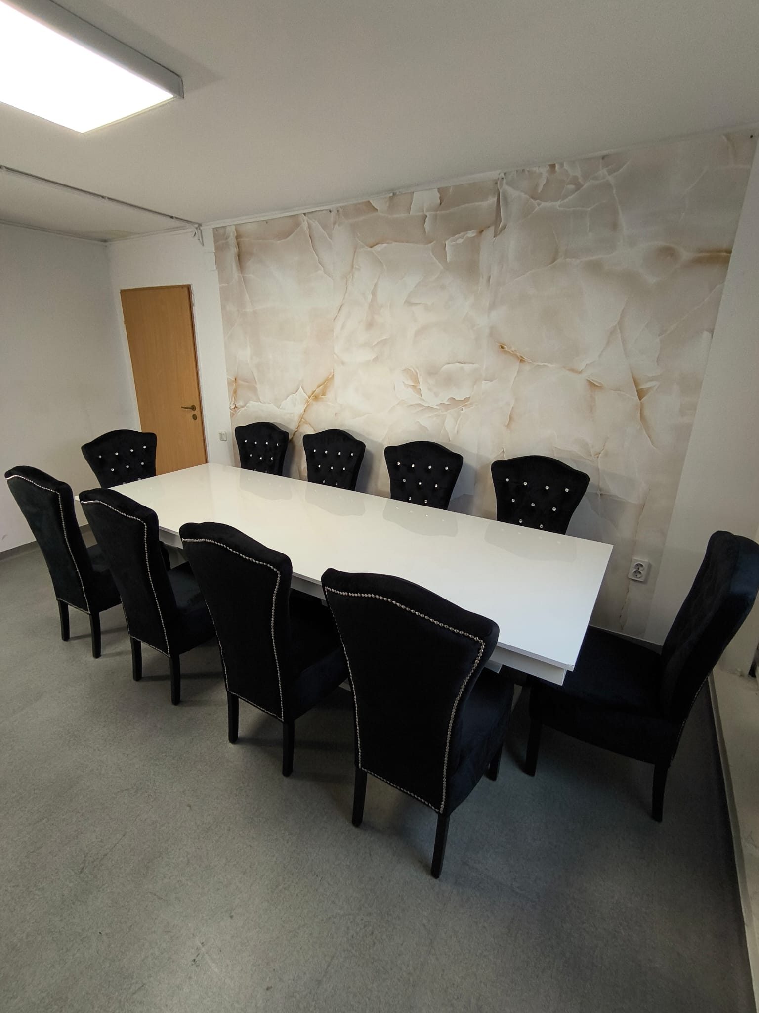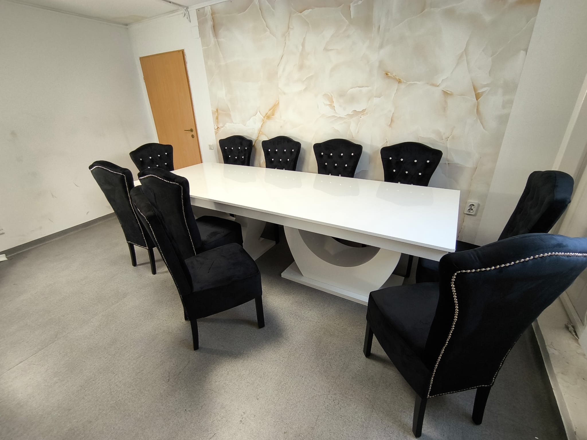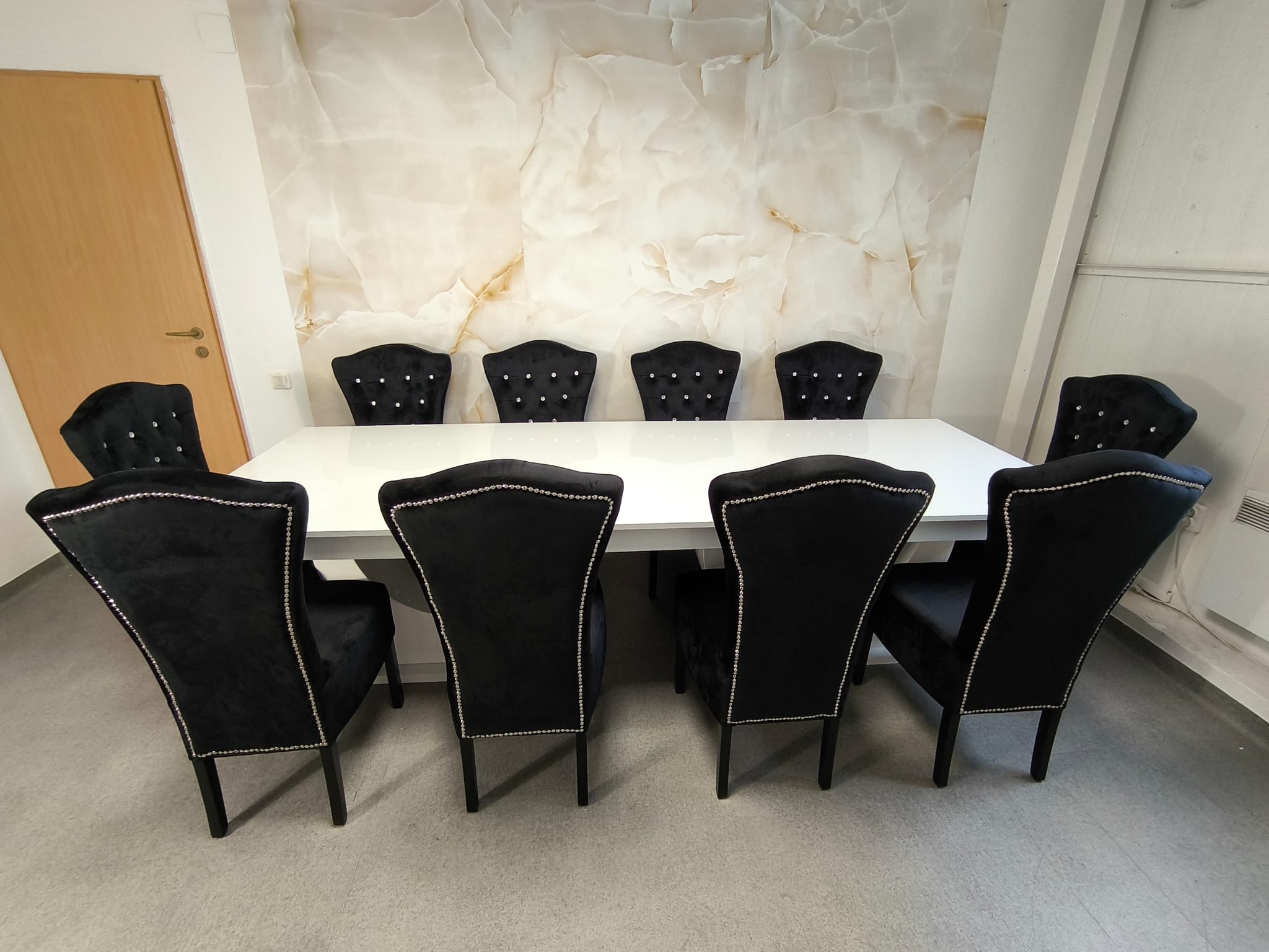 Intregul set este usor de integrat in orice tip de decor interior, datorita culorilor sale ce ofera un design modern, in timp ce tapiteria scaunelor ofera un plus de confort si eleganta, fiind in acelasi timp usor de intretinut.